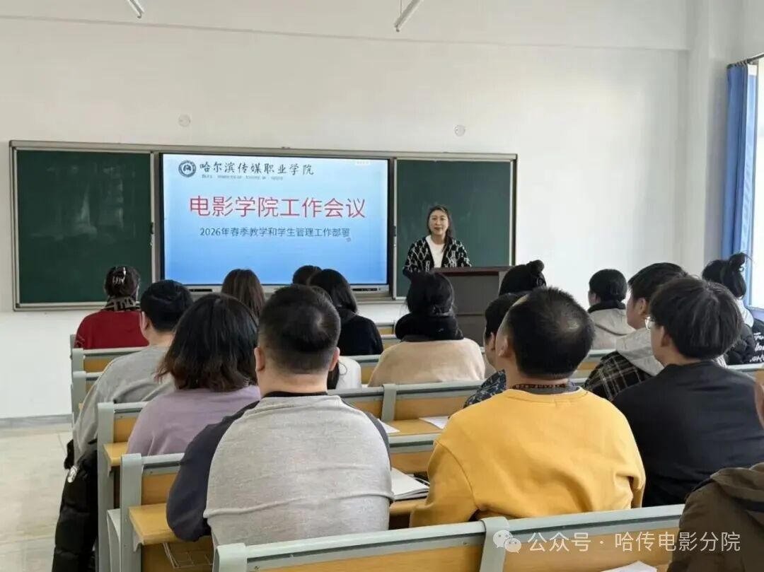 近日,电影学院召开 2026 年春季学期工作部署会,深入落实学校新学期工作部署要求,统筹推进学生教育管理服务高质量发展。学院领导成员、全体辅导员及任课教师参加会议,会议系统安排本学期重点工作,层层压实责任,为本学期各项工作有序开展奠定坚实基础。